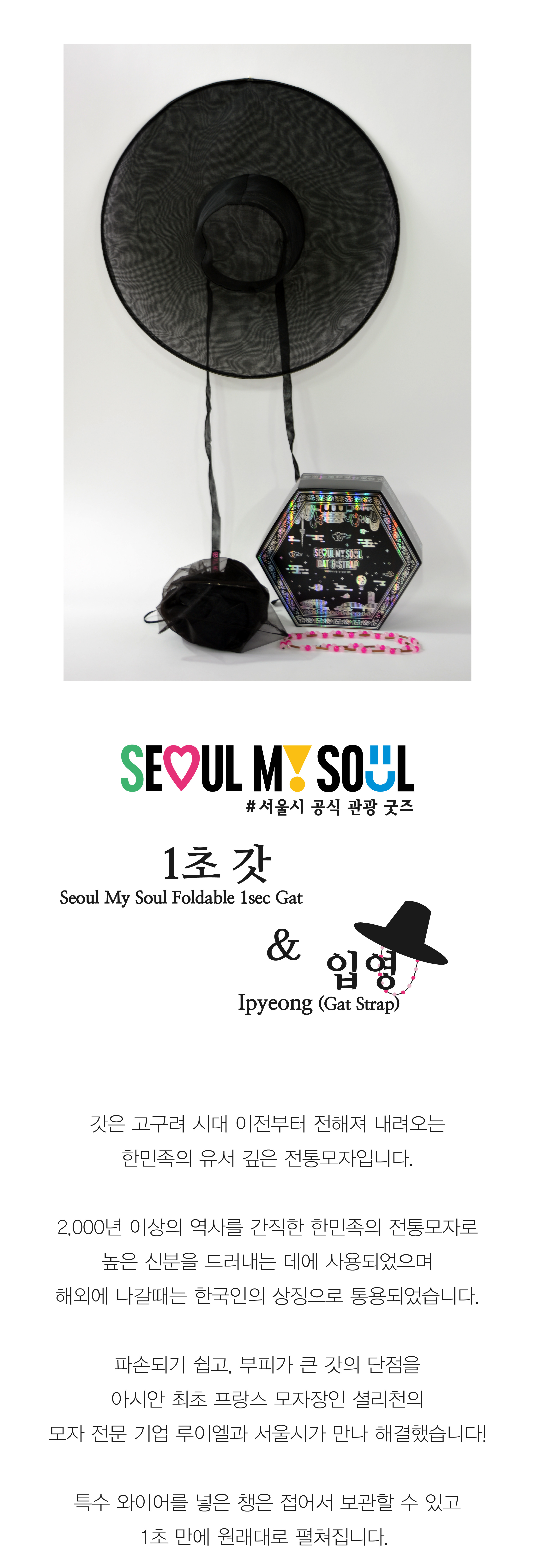 <서울 마이 소울 1초 갓> 서울시 공식 관광굿즈_접이식 갓_Seoul My Soul Foldable 1sec Gat NEW